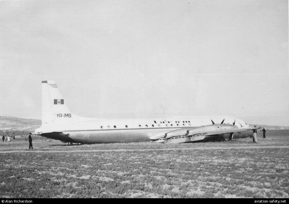 În plin zbor deasupra Mării Egee toate cele patru turbopropulsoare s-au oprit la o altitudine de peste 7.000 de metri. Echipajul a reuşit să planeze avionul până în zona plajei de lângă localitatea Paphos, din insula Cipru, unde a reuşit o aterizare forţată de nota 10 cu felicitări, cu trenul de aterizare escamotat! În urma acestui eveniment nu a fost vătămată nicio singură persoană iar aeronava a fost doar uşor avariată! Mai mult de atât, ea a fost reparată chiar la locul aterizării forţate şi a decolat de pe acel câmp spre locul unde fusese construită.